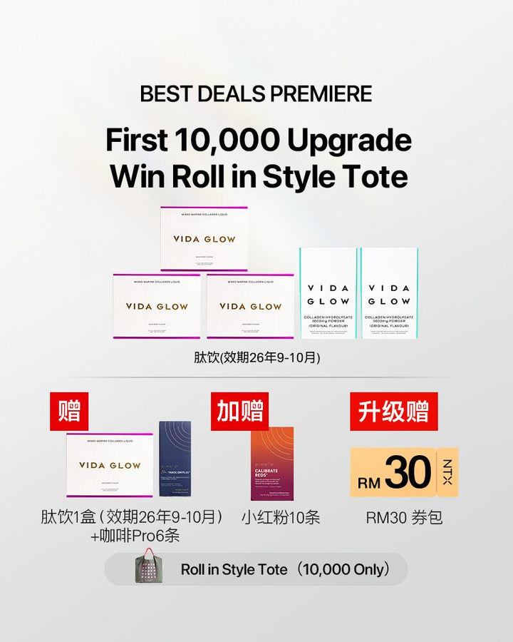 11.11 狂欢大促【升级套组】VidaGlow Collagen Liquid胶原蛋白肽饮3盒+Collagen 胶原蛋白粉2盒 /赠1盒