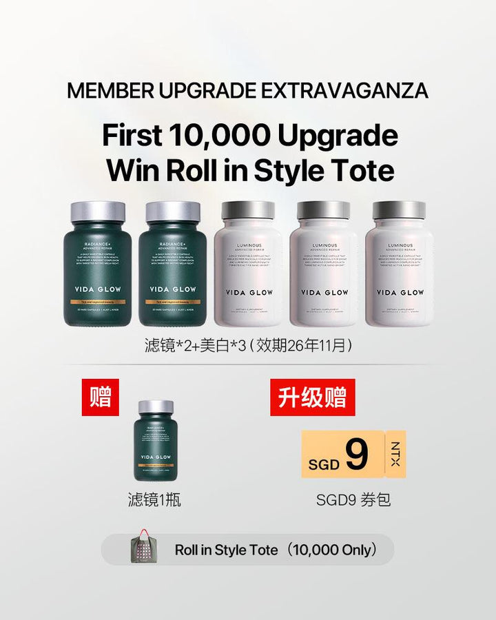 11.11 狂欢大促【升级套组】Vida Glow Luminous 纳米美白胶囊 *3罐 + Radiance Plus 滤镜胶囊2.0 *2 /赠 1罐 滤镜胶囊2.0*1罐